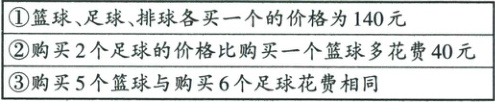 6. (2025·广东深圳)某学校采购体育用品,需要购买三种球类.已知某体育用品商店排球的单价为30元/个,篮球,足球的价格如下表: