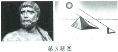 3. (2020·山西)泰勒斯是古希腊时期的思想家,科学家,哲学家,他最早提出了命题的证明.泰勒斯曾通过测量同一时刻标杆的影长,标杆的高度,金字塔的影长,推算出金字塔的高度,这种测量原理,就是我们所学的(