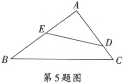 5. 如图,$E$为$AB$的中点,$\angle ADE=\angle B$. 若$AB = 12$,$AC = 9$,则$CD$的长为