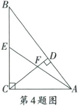4. (2020·山西)如图,在 $Rt\triangle ABC$ 中,$\angle ACB = 90^{\circ}$,$AC = 3$,$BC = 4$,$CD \perp AB$,垂足为 $D$,$E$ 为$BC$ 的中点,$AE$ 与 $CD$ 交于点 $F$,则 $DF$ 的长为 。
