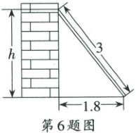 6. (2025·江苏连云港)如图,长为 $3m$ 的梯子靠在墙上,梯子的底端离墙脚线的距离为 $1.8m$,则梯子顶端的高度 $h$ 为