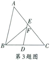 3. 如图,在 $ \triangle ABC $ 中,$ D $,$ E $ 分别是 $ BC $,$ AC $ 的中点,$ BF $ 平分 $ \angle ABC $,交 $ DE $ 于点 $ F $,若 $ AB = 10 $,$ BC = 8 $,则 $ EF $ 的长是