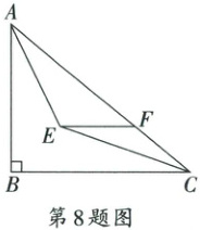 8. 如图,在 $ \triangle ABC $ 中,$ \angle ABC = 90° $,$ AB = 6 $,$ BC = 8 $,$ \angle BAC $,$ \angle ACB $ 的平分线相交于点 $ E $,过点 $ E $ 作 $ EF // BC $ 交 $ AC $ 于点 $ F $,则 $ EF $ 的长为