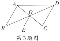 3. 如图,$□ ABCD$的对角线$AC$,$BD$相交于点$O$,点$E$是$BC$的中点,$AC=4$。若$□ ABCD$的周长为$12$,则$\triangle COE$的周长为 (