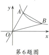 6. 如图,在平面直角坐标系中,经过点 $A$ 的双曲线 $y = \frac{k}{x}(x > 0)$ 同时经过点 $B$,且点 $A$ 在点 $B$ 的左侧,点 $A$ 的横坐标为 $1$,$\angle AOB = \angle OBA = 45^{\circ}$,则 $k$ 的值为