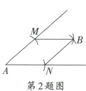 2. 如图,以点$A$为圆心,适当的长为半径画弧,交$\angle A$两边于点$M$,$N$,再分别以$M$,$N$为圆心,$AM$的长为半径画弧,两弧交于点$B$,连接$MB$,$NB$.若$\angle A = 40^{\circ}$,则$\angle MBN$的度数为(