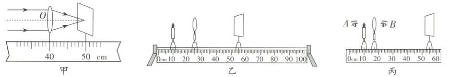 cm。(2)小明在某次实验中,将蜡烛、凸透镜、光屏放在光具座上如图乙所示的位置,光屏上呈现清晰的像,此像是倒立、