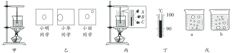 (6)小组收集数据的目的是观察水沸腾前后的现象和水在沸腾前后的温度变化情况,图戊是小梦同学在不同时间观察到的水中气泡变化情况,表示水沸腾现象的是图