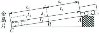 ④将金属片移至斜面的中点$B$,用刻度尺测出小车从斜面顶端$A$点到金属片$B$点的距离$s_{2}$。