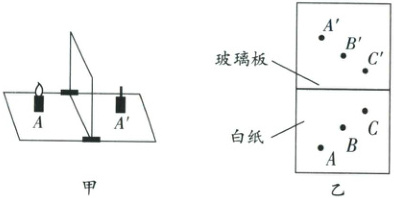 (6)小晨将点燃的蜡烛$A$放在玻璃板前面的白纸上,在玻璃板后面改变蜡烛$A'$的位置,使蜡烛$A'$与蜡烛$A$的像完全重合,并在白纸上描点。经过三次实验,记录的像与物对应的位置如图所示。为了得到实验结论,接下来他应该进行的操作是______。根据图乙实际做一下,可得出的结论是______。