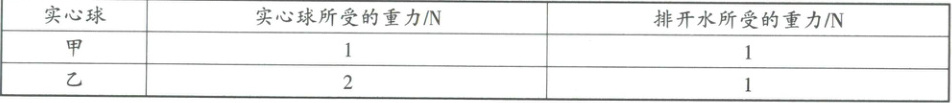 14. (科学推理)将体积相同的甲、乙两个实心球放入装有水的烧杯中。若甲、乙两球所受的重力和排开水所受的重力情况如下表,两球静止在水中时的情形可能是(