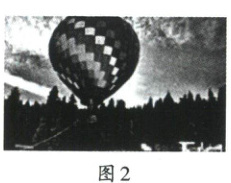 12. (热气球)新疆的天山天池被誉为“瑶池”,乘坐热气球可以俯瞰其景色之美。如图2所示的热气球,其下方开口处燃烧液化气,随着热气球内部气体温度升高,热气球体积膨胀到一定程度,便会升空。关于热气球升空的过程,下列说法正确的是(