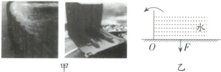 3. (2025·山西)如图甲所示是$L$型应急防洪板,能有效阻挡洪水。如图乙所示是单个防洪板的结构简图,请你在图乙中画出能阻碍防洪板向左翻倒的压力$F$的力臂$l$。