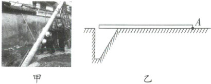 4. (2022·山西)如图甲所示,清明假期,亮亮同学回到老家,看到工程队正施工埋电线杆,进行电网改造。亮亮发现他们挖的坑形很特别,如图乙所示。工程师告诉亮亮这种坑不仅省力,还能缩短移动的距离。要把图乙中的电线杆竖立到坑内,请你画出作用在杆上$A$点最小力的示意图。