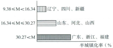 13. 图中辽宁、四川、新疆等省级行政区半城镇化率较低的主要原因是(