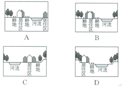C 该图从左到右依次是河流、居住区、耕地、山地,符合图文材料 正确