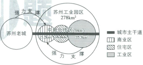 5. 从苏州老城主干道向东延伸串联中新合作区各功能区,体现的布局思路是(