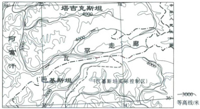 瓦罕走廊是帕米尔高原南端和兴都库什山脉北段之间的一个山谷,平均海拔4000多米,是中国与阿富汗联系的陆上唯一通道,“春种秋收夏游牧”是这里祖祖辈辈的生产方式。读图,回答下面小题。
