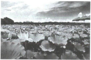 [河南鹤壁2024高一期末]莲藕喜温,不耐阴,不宜缺水,忌大风。莲藕采挖难度大,需要人工挖藕,在藕长出第一片叶时,藕农会将稻草踩入泥中。田藕种在田地里,水很浅,淀粉含量少,上市早;塘藕种在深水塘中,淀粉含量较高,上市晚。下图为广东省南部乾塘镇一处藕塘景观图。据此完成下面小题。