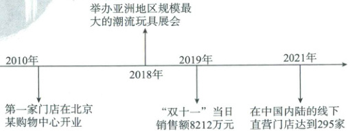 [浙江桐庐中学2024高一月考]P公司成立于2010年,是中国领先的潮流文化娱乐公司。发展十余年来,围绕全球艺术家挖掘等五个领域,构建了覆盖潮流玩具全产业链的综合运营平台。P公司主要售卖单价较高的盲盒玩具(即事先不知道盒子里面的具体内容)。下图为P公司的发展历程示意图。据此完成下面小题。