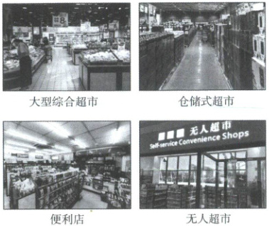 材料一 超级市场简称“超市”,是以经营食品以及家庭日用商品为主,实行连锁经营、敞开式售货和顾客自我服务的零售商店。20 世纪 30 年代初,超市最先出现在美国,此后迅速发展成为遍布全球各地的零售商业模式。超市类型多样,有仓储式超市、便利店、专业化超市、无人超市等。如图示意不同类型的超市。