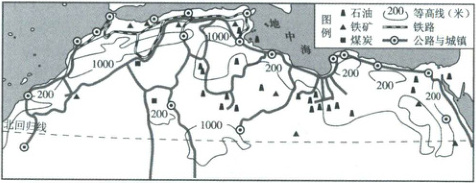 3.B 【解析】本题考查影响交通运输布局的因素。读图可知,该区域矿产资源丰富的地区多位于公路和铁路沿线,推测公路和铁路主要是随着矿产资源的开采而修建的,B正确;图中内陆地区城镇分布稀疏,城镇分布的地区交通线并不一定密集,A错误;图中内陆地区地形平坦开阔,地形对交通运输网布局影响不大,C错误;该区域内陆地区主要为撒哈拉沙漠,淡水资源的分布没有太大区别,D错误。