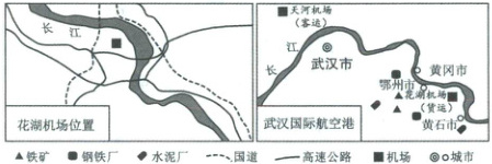 [黑龙江齐齐哈尔2025高一月考]2021年鄂州新建机场经中国民用航空局同意正式命名为鄂州花湖机场(后更名为鄂州花湖国际机场),2022年7月正式通航。鄂州花湖机场位于中国湖北省鄂州市鄂城区,为4E级国际机场、航空物流国际口岸、亚洲第一座专业性货运枢纽机场。天河机场与花湖机场分别主要承担客运和货运,并联动互补,武汉城市圈双枢纽航空运输网隐约成形。下面两图分别示意花湖机场和武汉国际航空港双机场位置。读图完成下面小题。