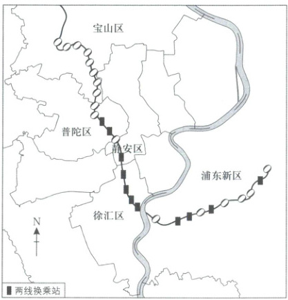 (2)描述上海地铁7号线站点的空间分布特点。(6分)