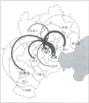 )A. 廊坊与北京经济联系指数高与距离北京近无关