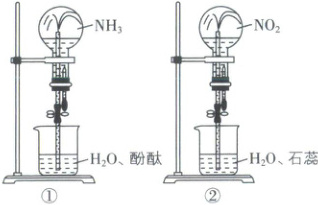 )A.两烧瓶中气体颜色不同,两“喷泉”溶液都是红色