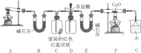 思路导引A中氢氧化钙与氯化铵共热反应制备氨气,通过B中碱石灰干燥后,与C中湿润的红色石蕊试纸作用,试纸变蓝,装置D中胶头滴管装有浓盐酸,与氨气作用生成氯化铵,再通过E中碱石灰干燥,干燥的氨气与F中氧化铜共热反应生成铜、氮气和水,最后利用水吸收未反应的氨气,并用倒扣的漏斗防倒吸。