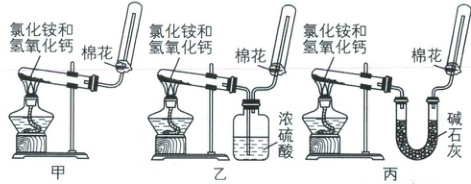 (4)加热碳酸氢铵固体生成氨气、二氧化碳和水,甲没有除杂、干燥装置,不能制取纯净氨气;氨气能与浓硫酸反应,乙不能收集到氨气;丙中碱石灰吸收二氧化碳和水,所以丙能够达到实验目的。