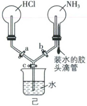 (6)①如果关闭活塞c,打开活塞a、b,再挤压胶头滴管,盛有$\mathrm{NH_3}$的烧瓶内压强减小,$\mathrm{HCl}$气体进入盛有$\mathrm{NH_3}$的烧瓶中,产生大量白烟;②在①操作的基础上,两个烧瓶内的压强都减小,打开活塞c,烧杯中的水被吸入两个烧瓶中,产生“双喷”现象。