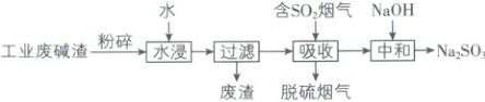 6. [安徽淮南二中2025高一期中]工业废碱渣的主要成分为${Na_{2}CO_{3}}$等,“水浸”后用于烟气脱硫,“吸收”含有${SO_{2}}$的烟气后得到${NaHSO_{3}}$,再经“中和”获得${Na_{2}SO_{3}}$;${Na_{2}SO_{3}}$可用于处理废水中的${Cl_{2}}$。相关过程如下: