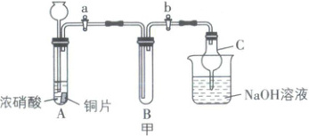 。③待试管${B}$中充满红棕色气体,关闭旋塞${a}$和${b}$;取下试管${B}$;向其中加入适量${Na_{2}O_{2}}$粉末,塞上塞子,轻轻振荡试管内粉末,观察到红棕色气体迅速消失;再将带火星的木条迅速伸进试管内,木条复燃。
