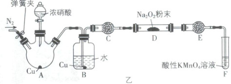 (3)丙同学用图乙所示装置(部分夹持装置略)探究${NO}$与${Na_{2}O_{2}}$的反应。