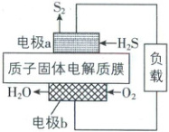 思路导引$H_2S$燃料电池中,电极a上$H_2S$失电子生成$S_2$和$H^+$,为负极,负极反应式为$2H_2S-4e^-=S_2+4H^+$;电极b为正极,正极上$O_2$得电子和氢离子反应生成$H_2O$,电极反应式为$O_2+4H^++4e^-=2H_2O$。