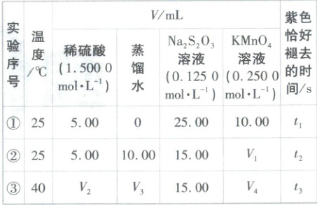 12. [江西萍乡2025高一期中]硫代硫酸钠(Na₂S₂O₃)是重要的还原剂,能被酸性KMnO₄溶液氧化,反应原理如下:5Na₂S₂O₃+8KMnO₄+7H₂SO₄=8MnSO₄+5Na₂SO₄+4K₂SO₄+7H₂O。某学习小组为探究影响该化学反应速率的因素,设计了如表所示系列实验。