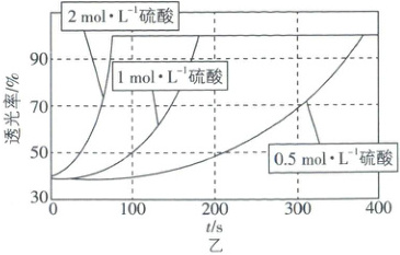 (5)由图乙可知,在一定范围内,硫酸的浓度越大,达到相同透光率所需的时间越短,表明反应速率越快。