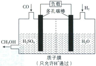 (4) H₂还原CO电化学法制备甲醇(CO + 2H₂ = CH₃OH)的工作原理如图所示。通入H₂的一端是电池