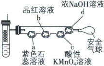 11. 将铜丝插入热的浓硫酸中进行如图(a~d均为浸有相应试液的棉花)所示的探究实验,下列分析正确的是(