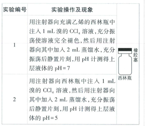 8. 创新情境[广东部分学校2025高一联考]某同学探究乙烯与溴的四氯化碳溶液的反应,实验操作和实验现象记录如下: