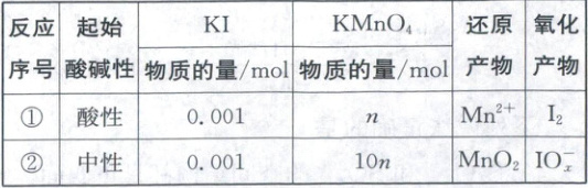 7. (2024·北京卷,3分)不同条件下,当${KMnO_{4}}$与${KI}$按照反应①②的化学计量比恰好反应,结果如下。