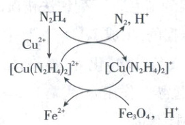 5. (2025·山东卷,2分)用肼${(N_{2}H_{4})}$的水溶液处理核冷却系统内壁上的铁氧化物时,通常加入少量${CuSO_{4}}$,反应原理如图所示。下列说法正确的是(