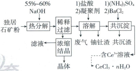 【解析】以独居石为原料制备$CeCl_{3} · nH_{2}O$的工艺流程