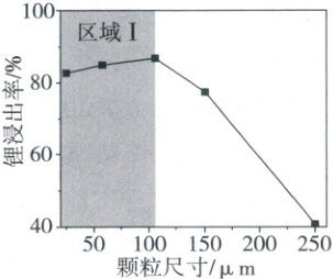 一定条件下,颗粒尺寸与锂浸出率关系如图。区域Ⅰ中,锂浸出率随颗粒尺寸减小而降低的原因是_______。