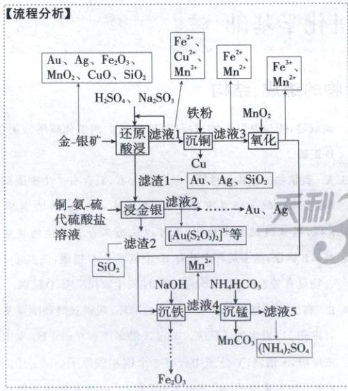 【解析】从金-银矿中提取并回收金属的工艺流程