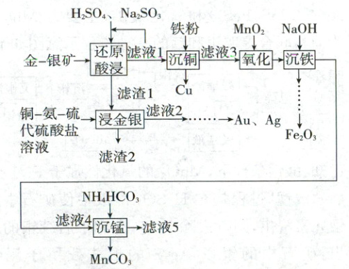 已知:①金-银矿中 Cu、Mn 元素的含量分别为0.19%、2.35%。
