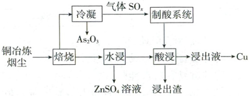 $2.【$模块融合$】(2025·$甘肃卷$,15 $分$)$研究人员设计了一种从铜冶炼烟尘$($主要含$ S、$${As_{2}O_{3}}$及$Cu、$$Zn、$$Pb $的硫酸盐$)$中高效回收砷、铜、锌和铅的绿色工艺$,$部分流程如下$:$