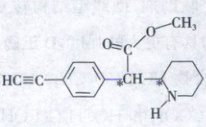 中两个环之间的碳原子为饱和碳原子,四面体构型,右侧单键所连的环一定不与其在同一直线上,故分子中至少有5个碳原子共直线,A错误;手性碳原子是指连接4个完全不同的原子或基团的饱和碳原子,该分子中含有2个手性碳原子,即“*”标出的碳原子